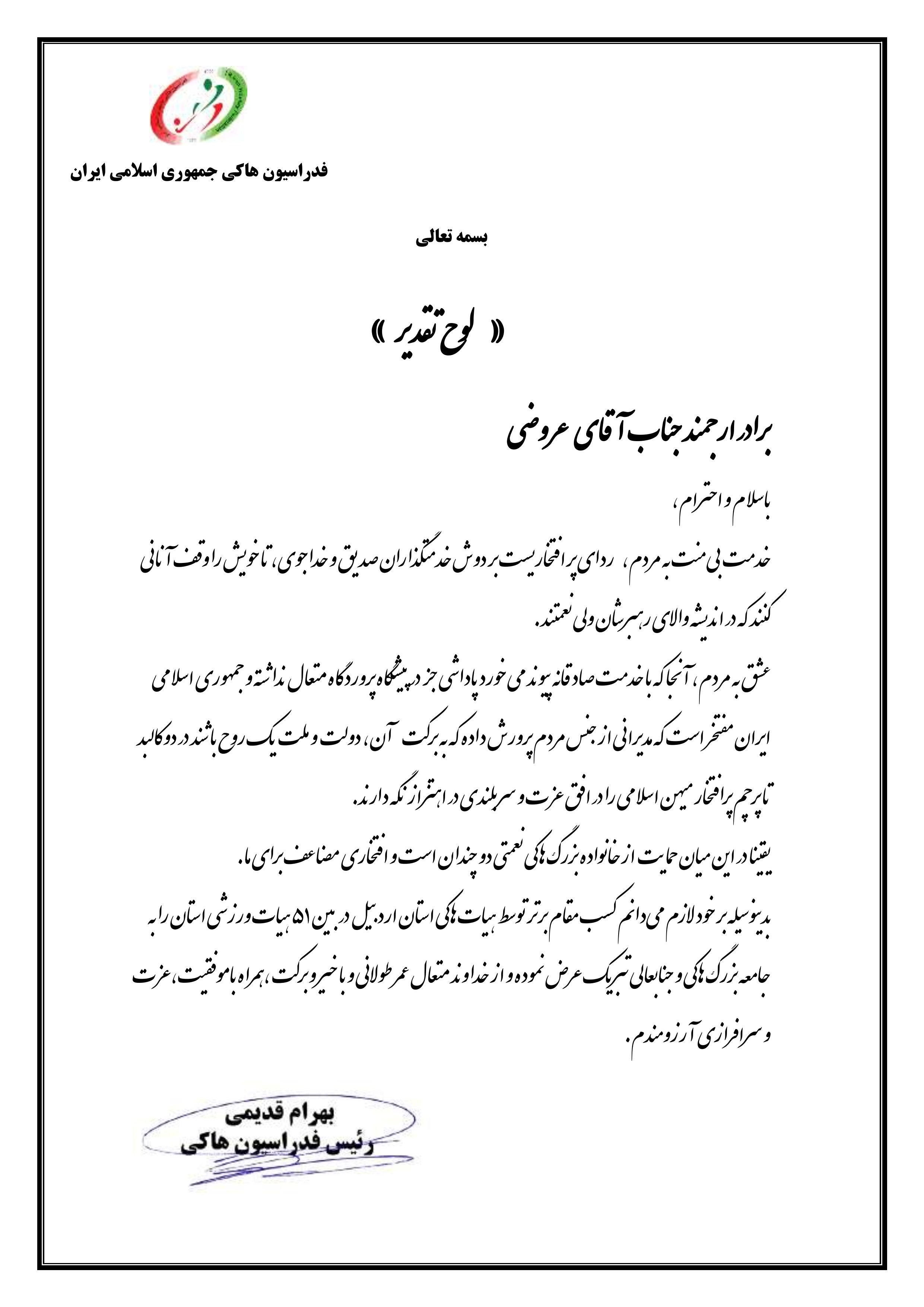 بازدید دکتر بهرام قدیمی رییس فدراسیون هاکی جمهوری اسلامی ایران از چهارمین اردوی آماده سازی تیم ملی بزرگسالان هاکی سالنی آقایان کشور در ارومیه